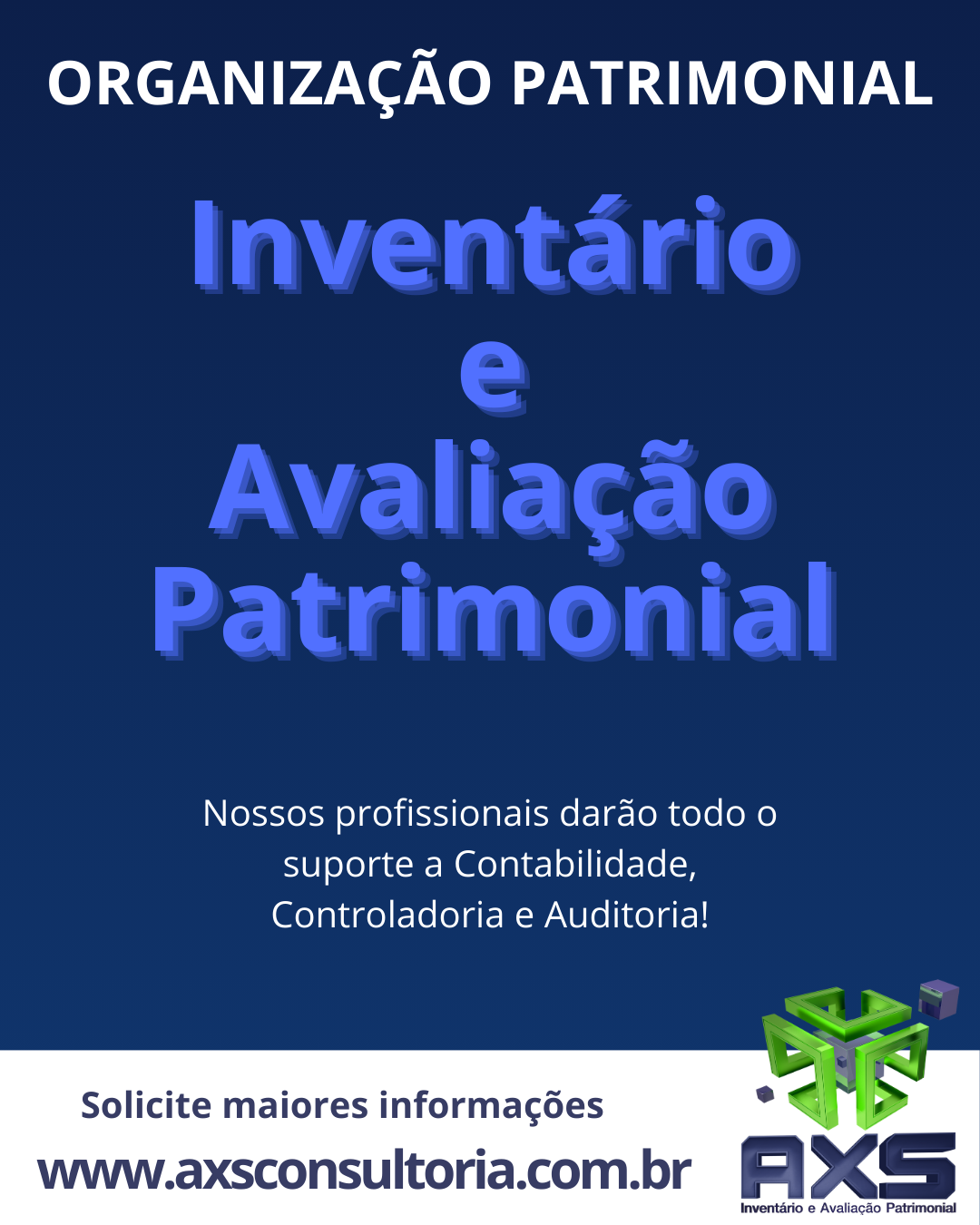 A AXS Consultoria Empresarial atua há mais de uma década em projetos de organização patrimonial, inventário, avaliação, conciliação físico-contábil e BPO Patrimonial em todo o Brasil.