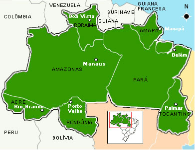 Manaus, Porto Velho, Macapá, Rio Branco, Boa Vista, Ji-Paraná, Parintins, Santana, Itacoatiara, Ariquemes, Manacapuru, Cacoal, Cruzeiro do Sul, Vilhena, Coari, Tefé, Jaru, Rolim de Moura, Maués, Tabatinga, Manicoré, Guajará-Mirim, São Gabriel da Cachoeira, Humaitá, Laranjal do Jari, Lábrea, Ouro Preto do Oeste, Sena Madureira, Buritis, Pimenta Bueno, Iranduba, Tarauacá, Machadinho D'Oeste, Feijó, Borba, Careiro, São Paulo de Olivença, Autazes, Boca do Acre, Eirunepé, Benjamin Constant, Santo Antônio do Içá, Nova Olinda do Norte, Espigão D'Oeste, Barreirinha, Carauari, Rio Preto da Eva, Barcelos, Rorainópolis, Presidente Figueiredo, Alta Floresta D'Oeste, Careiro da Várzea, São Miguel do Guaporé, Presidente Médici, Nova Mamoré, Fonte Boa, Tapauá, Oiapoque, Manaquiri, Tonantins, Brasiléia, Senador Guiomard, Pauini, Novo Aripuanã, Caracaraí, Colorado do Oeste, Nhamundá, Maraã, Apuí, Plácido de Castro, Urucurituba, Ipixuna, Nova Brasilândia D'Oeste, Jutaí, Santa Isabel do Rio Negro, Alto Paraíso, Candeias do Jamari, Alvorada D'Oeste, Envira, Cerejeiras, Codajás, Urucará, São Francisco do Guaporé, Novo Airão, Alto Alegre, Xapuri, Guajará, Porto Grande, Mazagão, Cujubim, Anori, Beruri, Mâncio Lima, Porto Acre, Atalaia do Norte, Costa Marques, Epitaciolândia, Urupá, Boa Vista do Ramos, Marechal Thaumaturgo, Alvarães, Mucajaí, Campo Novo de Rondônia, Rodrigues Alves, Tartarugalzinho, Monte Negro, Mirante da Serra, Seringueiras, Alto Alegre dos Parecis, Acrelândia, Canutama, Governador Jorge Teixeira, Cantá, Vitória do Jari, Caapiranga, Ministro Andreazza, Bonfim, Theobroma, Uarini, Novo Horizonte do Oeste, Corumbiara, Santa Luzia D'Oeste, Itapiranga, Vale do Anari, Vale do Paraíso, São Sebastião do Uatumã, Juruá, Calçoene, Pacaraima, Capixaba, Amaturá, Silves, Porto Walter, Anamã, Itamarati, Itapuã do Oeste, Nova União, Amajari, Amapá, Chupinguaia, Uiramutã, Pedra Branca do Amapari, Manoel Urbano, Normandia, Caroebe, Cabixi, Bujari, São Felipe D'Oeste, Jordão, Iracema, São João da Baliza, São Luiz, Cacaulândia, Assis Brasil, Japurá, Ferreira Gomes, Teixeirópolis, Parecis, Cutias, Santa Rosa do Purus, Serra do Navio, Primavera de Rondônia, Castanheiras, Itaubal, Pracuúba, Rio Crespo, Pimenteiras do Oeste